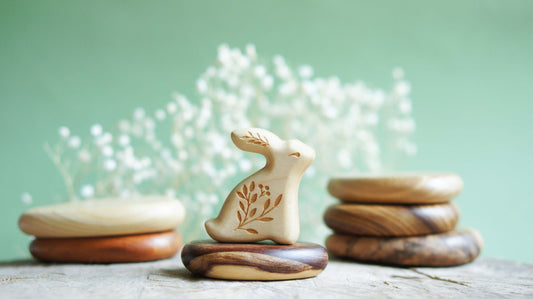 Sale price $42.00 USDBunny wooden figurine set 2 pcs - Wooden rabbit figurine - Wooden figurine nursery decor - Made in the U.S.A
